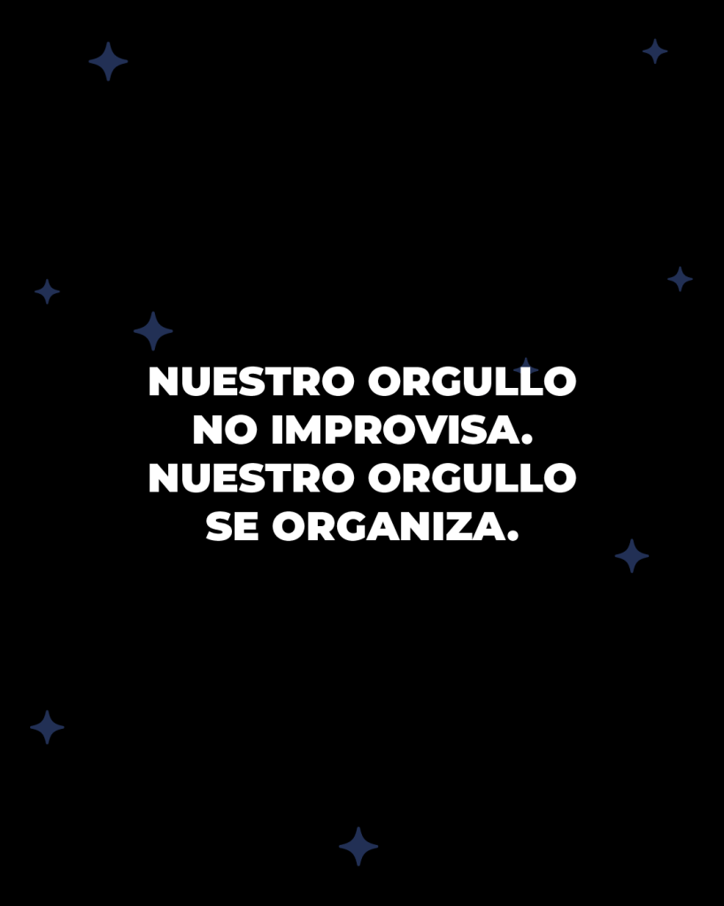 Como organización comprometida con el respeto, la inclusión y la profesionalización del activismo, reiteramos que todas nuestras acciones y eventos se planean con la debida anticipación, responsabilidad y enfoque comunitario. Nuestro equipo trabaja durante todo el año en proyectos que visibilizan nuestras luchas, celebran nuestras identidades y fortalecen la construcción de espacios seguros para todes.